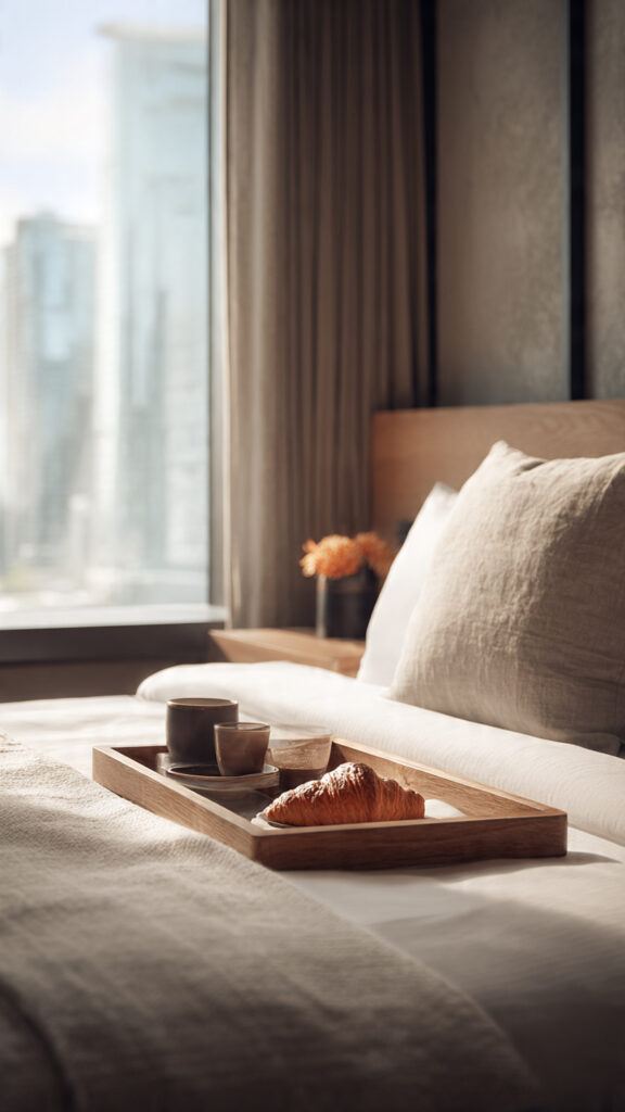 Fresh sheets. Soft lighting. Expensive-smelling candles. A plush robe. Phone on Do Not Disturb. You’re not “staying in”—you’re checking into yourself.