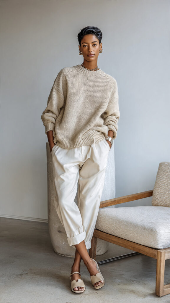 Add loafers with gold accents and a tan tote. Clean. Calm. Chic.