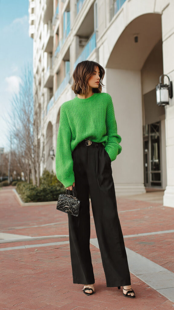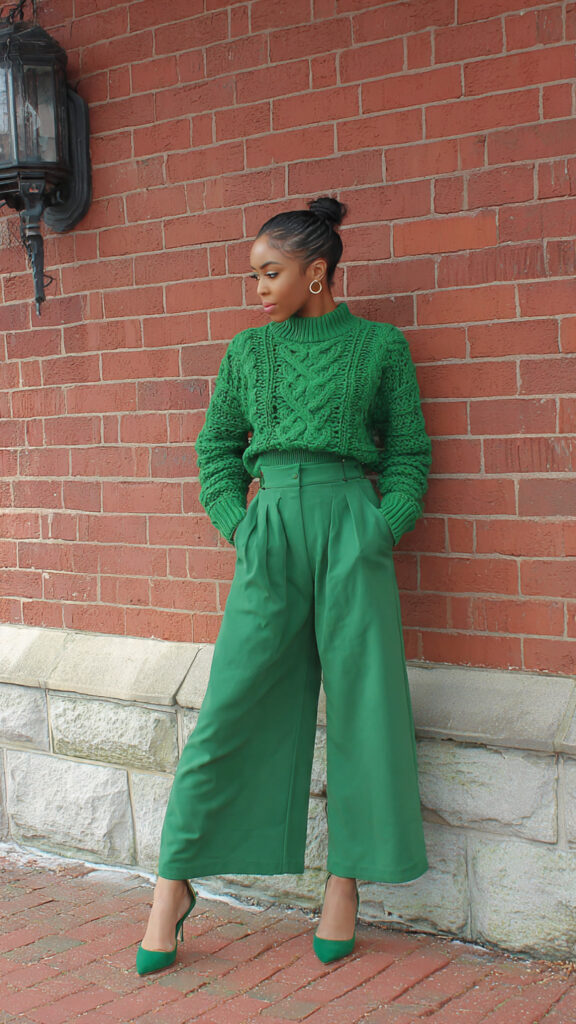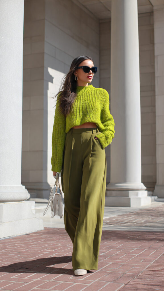 Green Crop Sweater + Wide-Leg Pants