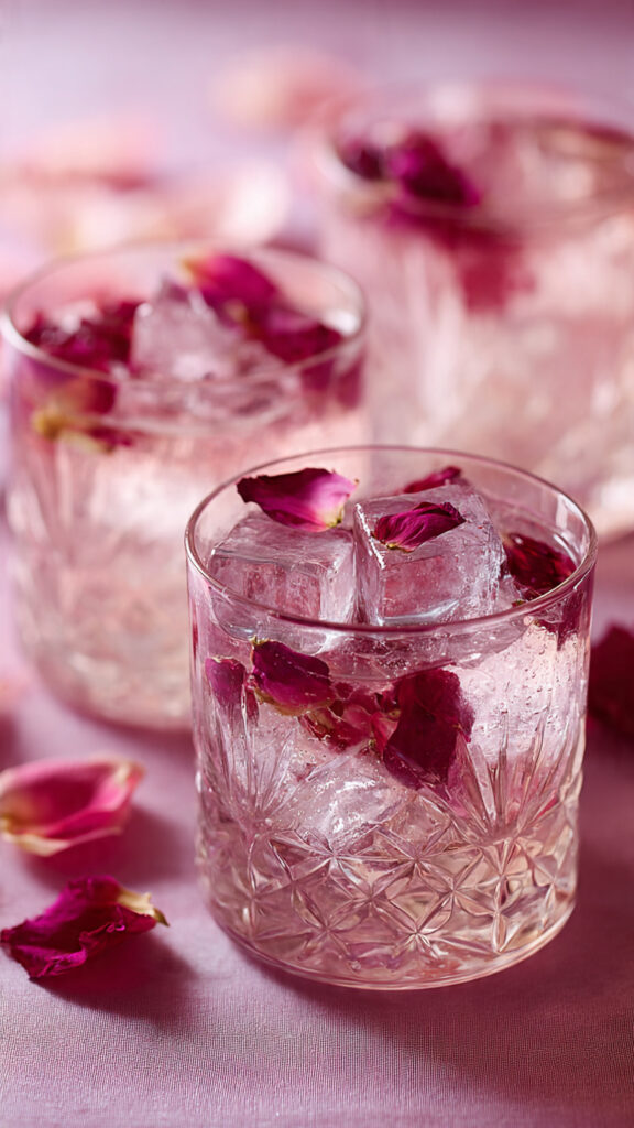 Freeze edible rose petals into ice cubes and serve them in drinks. It’s subtle, unexpected, and very Pinterest-worthy.