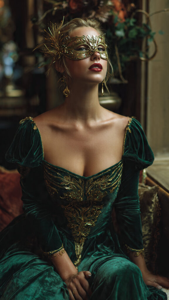 2. Emerald Velvet Masquerade Look
