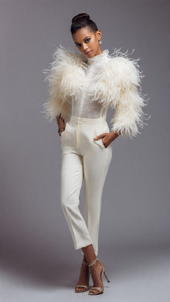 4. Feather-Trim Statement Outfit