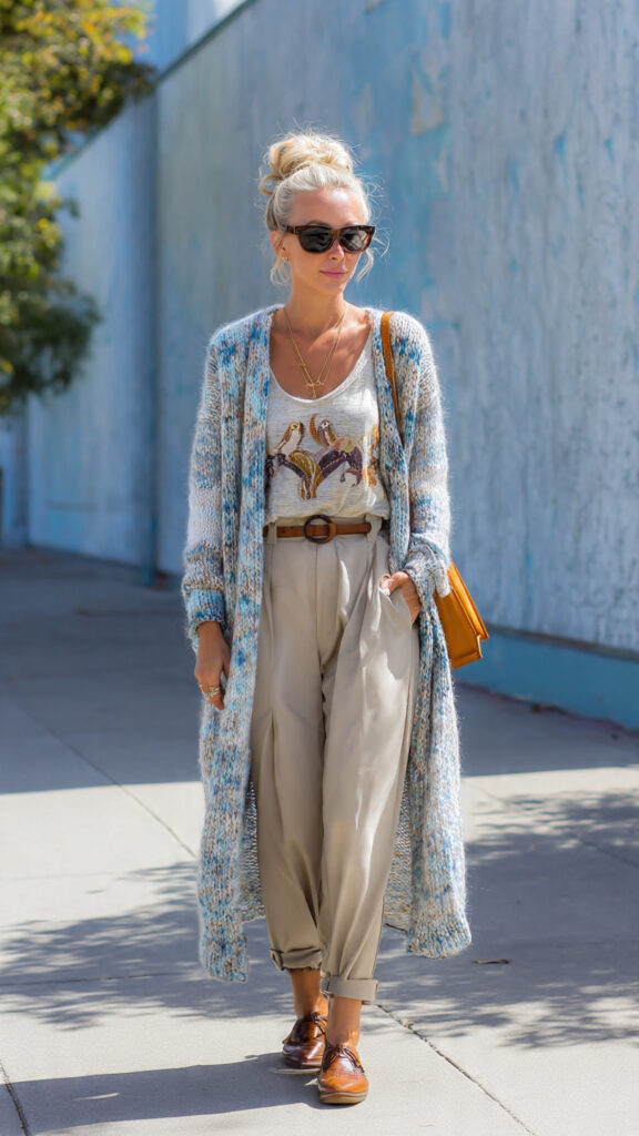 7. Long Cardigan + Tank + Straight Pants