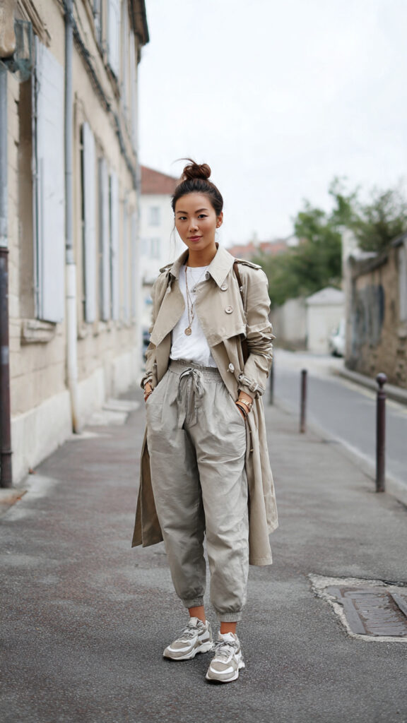 4. Trench Coat + Joggers + Sneakers