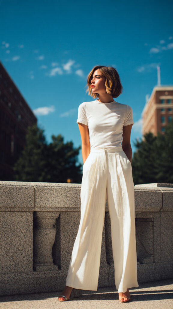 5. Wide-Leg Pants + Fitted Tee