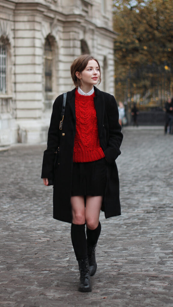 9. Black Coat + Red Sweater + Mini