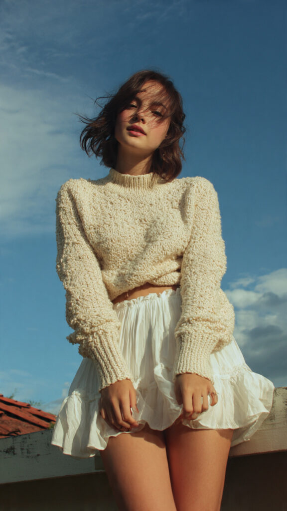 Soft cream knits + silky skirts = low-effort romance. This combo works perfectly for at-home dates or relaxed dinners when you still want to feel put together.