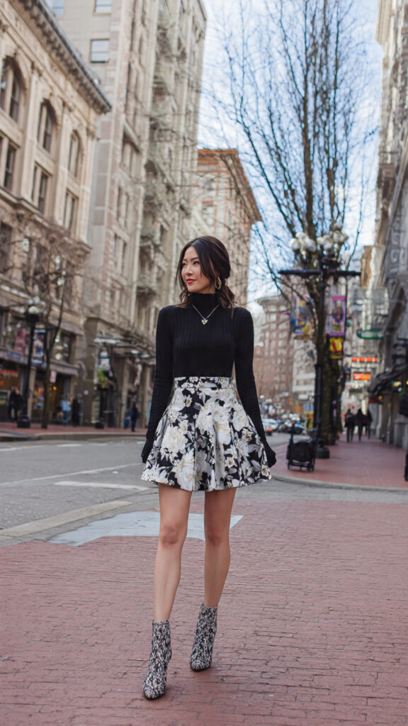5. Floral Knit + Pleated Mini