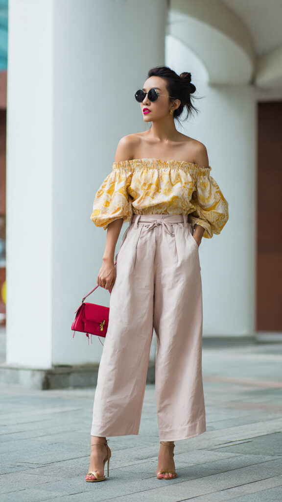 27. Off-Shoulder Top + Wide-Leg Trousers