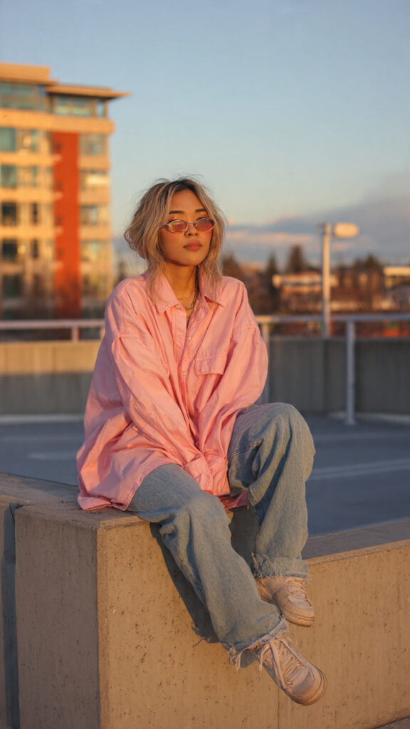 26. Oversized Pink Button-Up + Jeans