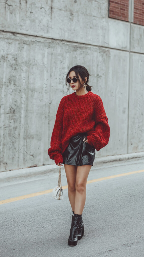 3. Oversized Red Sweater + Mini Skirt
