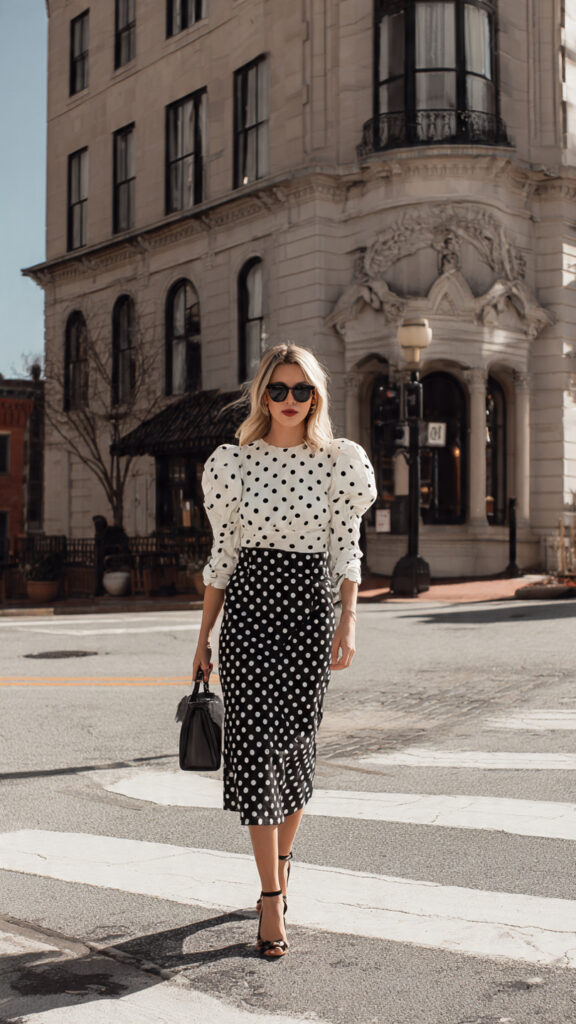 23. Puff-Sleeve Blouse + Polka Dot Midi