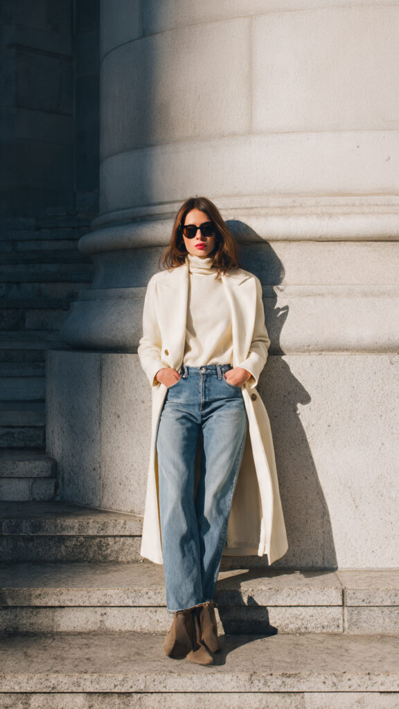 12. Cream Coat + Classic Denim