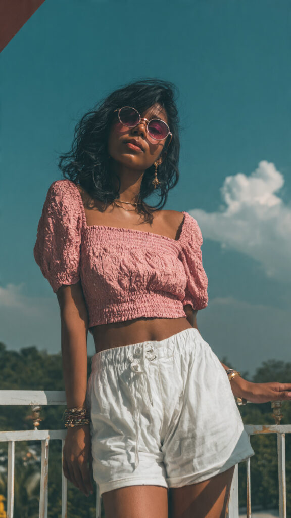 21. Textured Pink Top + White Shorts