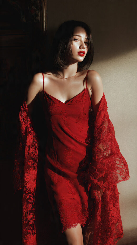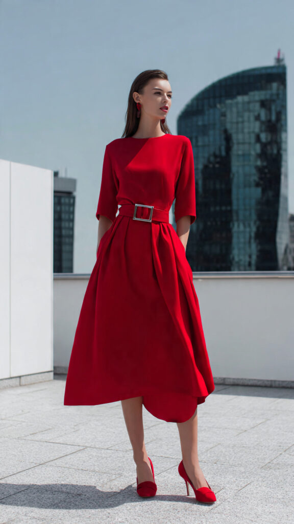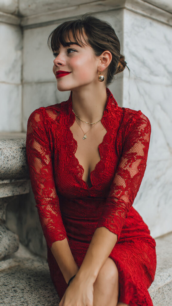 Lace in red is bold—but when done right, it’s elite. A scarlet lace midi dress mixes romance with structure.