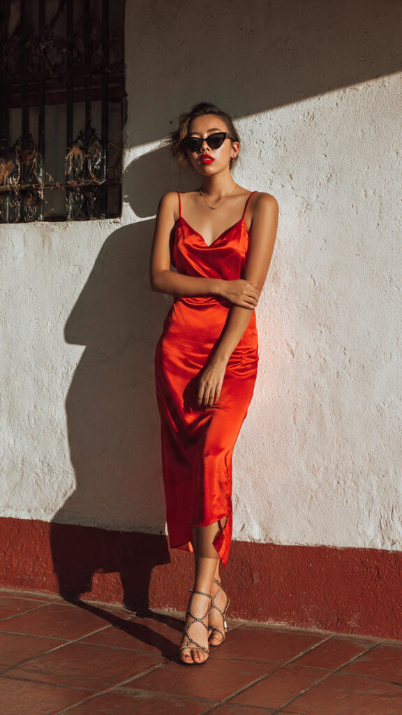 Slip dresses are still undefeated. A silk red slip dress feels modern, sensual, and effortless.