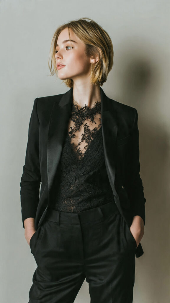Wear a lace or satin top underneath. People love this because confidence is the best accessory.