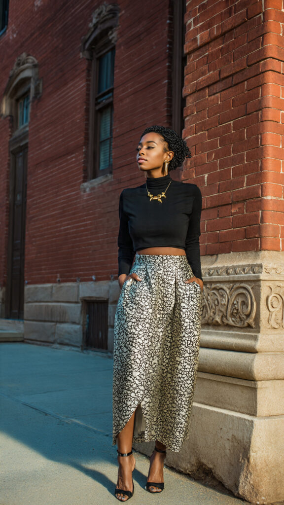 23. Black Top + Statement Skirt