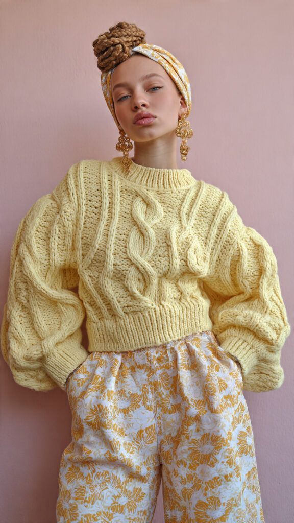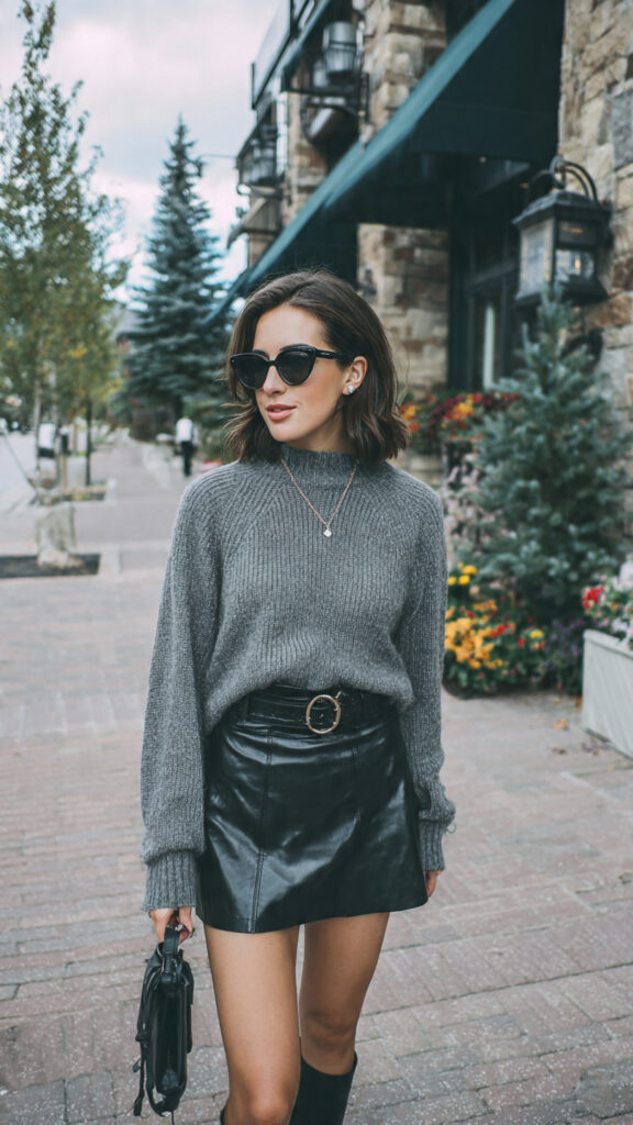 Cozy on top, playful on bottom. A cable-knit sweater paired with a mini skirt feels cute, not childish.