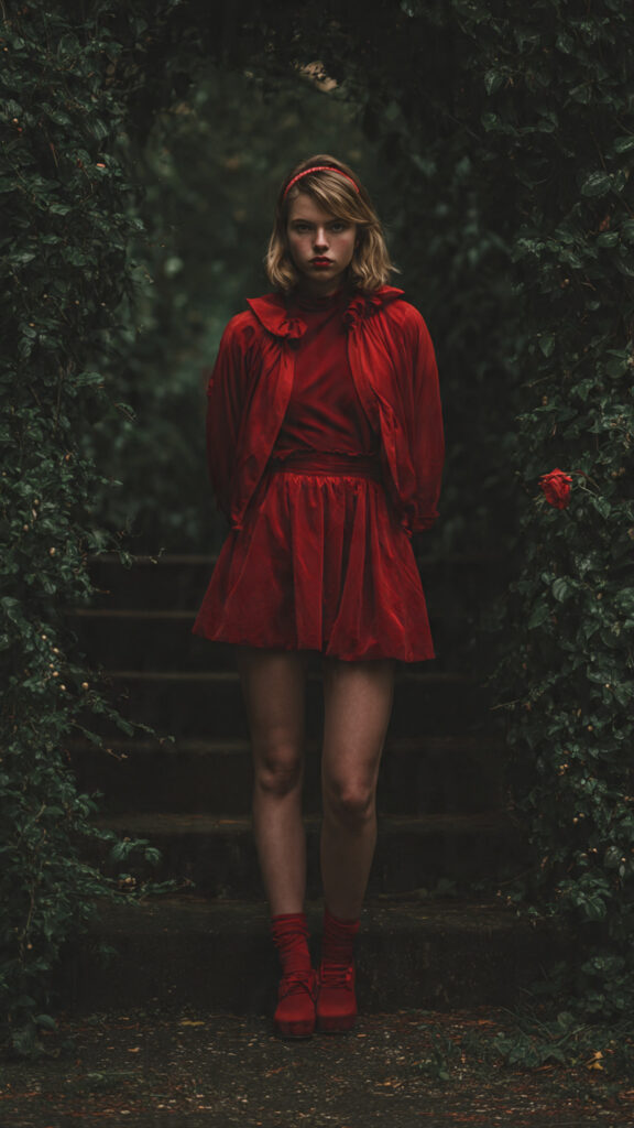 This outfit works because red brings instant drama without extra effort.
