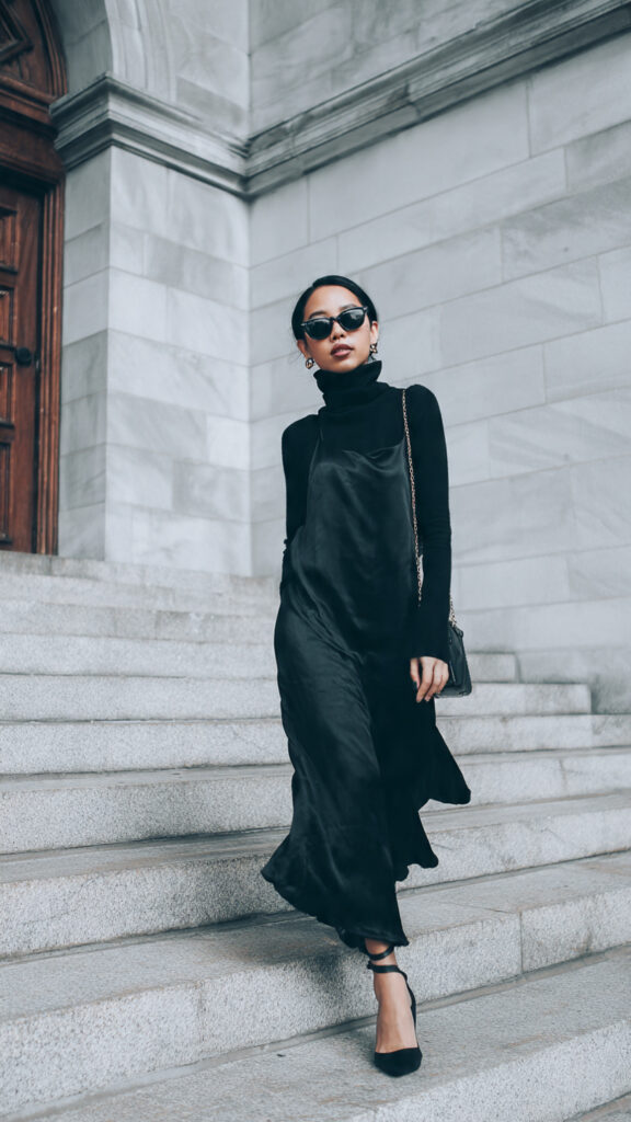 | 9 | Slip dress + turtleneck | Both | Black, wine | Smart winter layering |