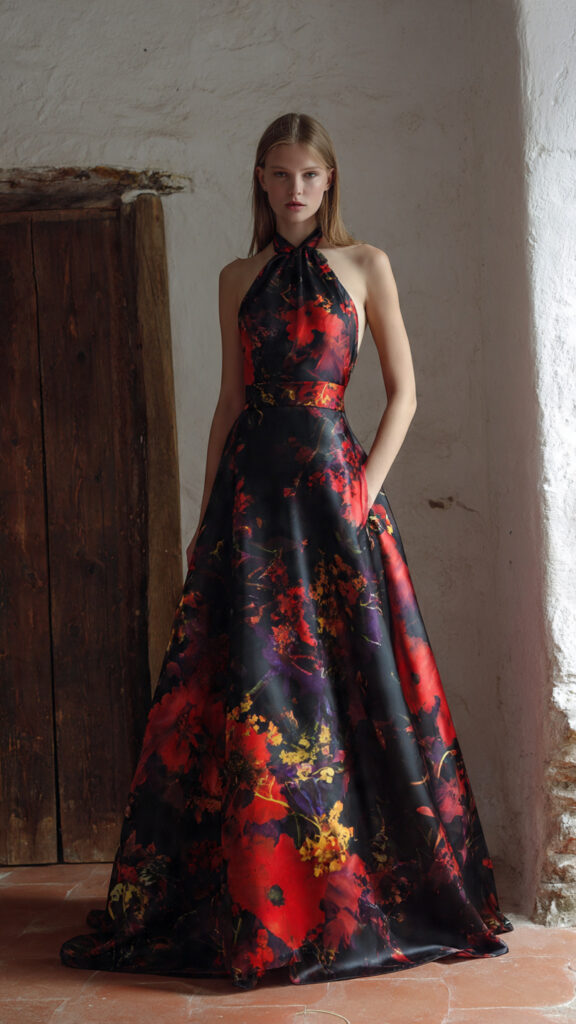 13) Halter-Neck Long Satin Dress