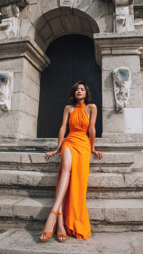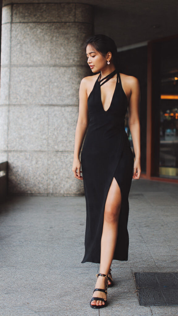 This one does the talking for you. The corset shape creates structure, the slit adds movement, and the heels keep it formal. I’d wear this to evening receptions, no hesitation.