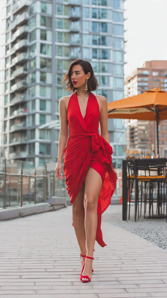 15) Red Wrap Dress + Heels