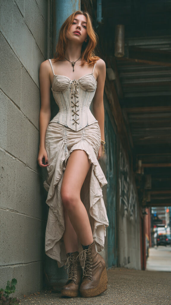 11) Thin-Strap Long Corset Dress + Wedges