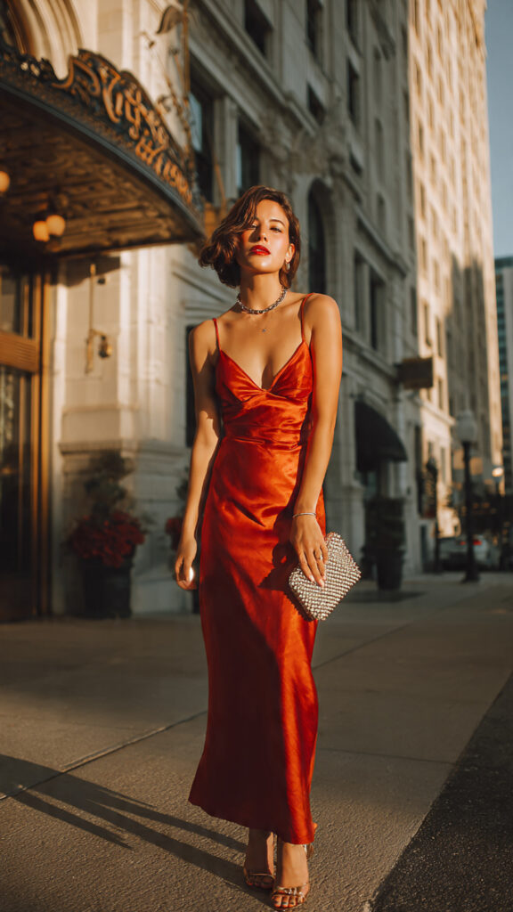 4) Elegant Slip Dress + Strappy Heels