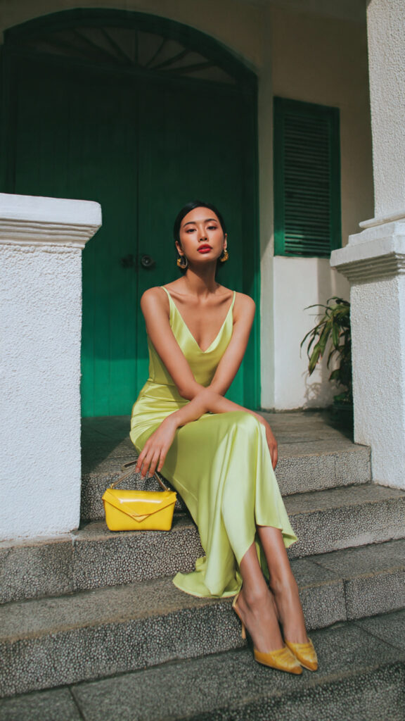 - Flowy fabrics that move with you (chiffon, satin, light crepe).