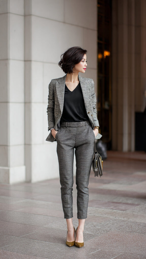 A tailored blazer adds structure, while a V-neck tee opens up the neckline and elongates the torso. Tailored pants skim curves instead of fighting them. Some swear by boxy blazers, but fitted wins here IMO.