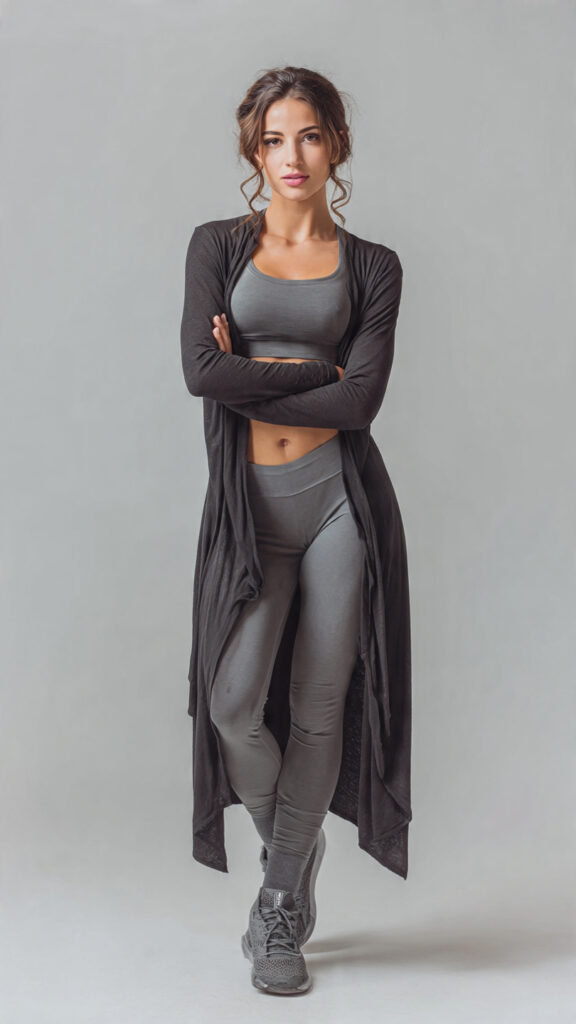 A longline cardigan worn open over a fitted base creates vertical lines. Keep everything underneath streamlined. I love this for cozy fall looks that don’t feel bulky.