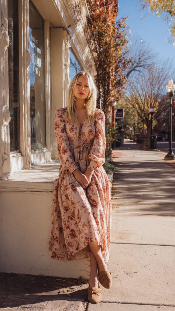A wrap dress defines your waist naturally and flows over hips without clinging. Low heels keep it walkable and balanced. I grab this when I want instant confidence with zero effort.