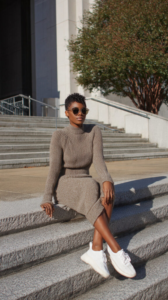 5. Ribbed Knit Dress + Sneakers