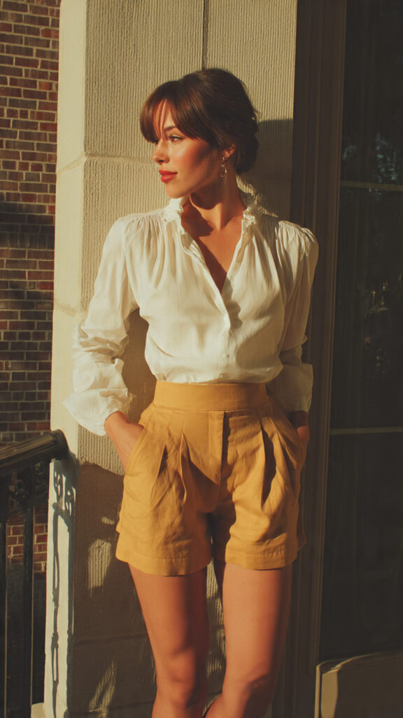 19. Soft Blouse + Tailored Shorts (Warm Weather)