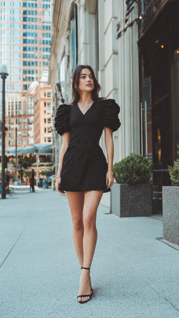 4) Puff-Sleeve Mini Dress + Simple Heels