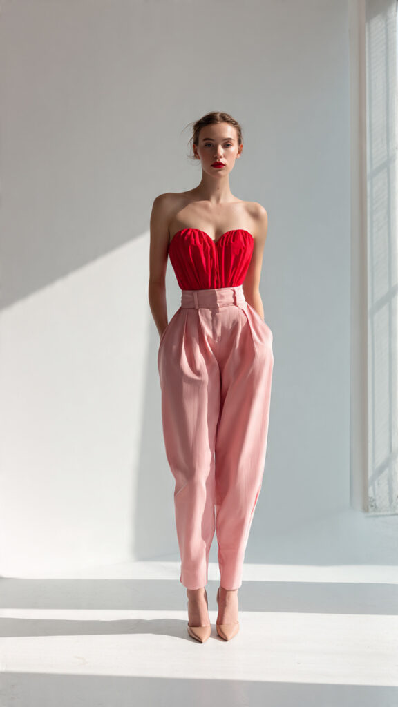 1. Red Balloon Tube Top + Pink Wide-Leg Pants