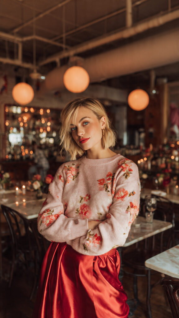Galentine’s Day style isn’t about rules. It’s about wearing something that makes you feel good, whether that’s a fuzzy heart sweater or a full red satin moment.