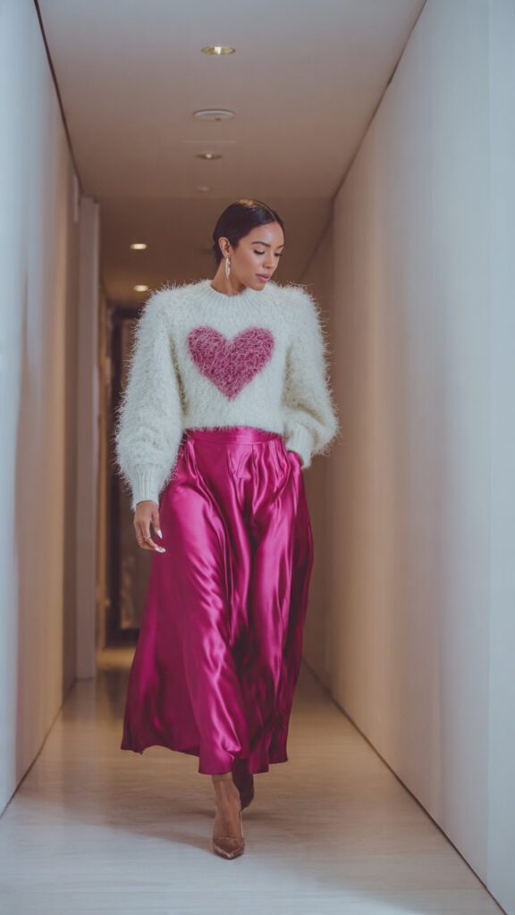10. Heart Sweater + Silky Skirt Combo