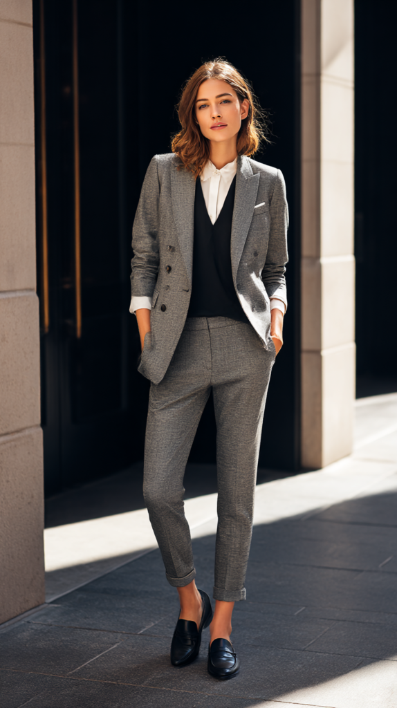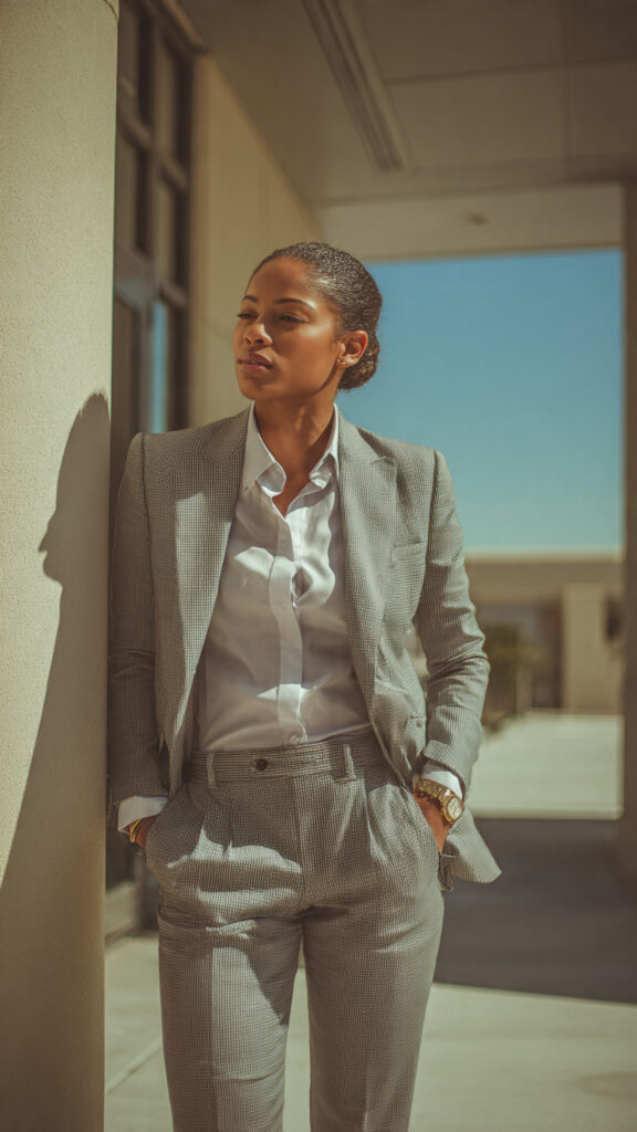 Why it works: sharp tailoring sends a clear message—competent, confident, in charge.
