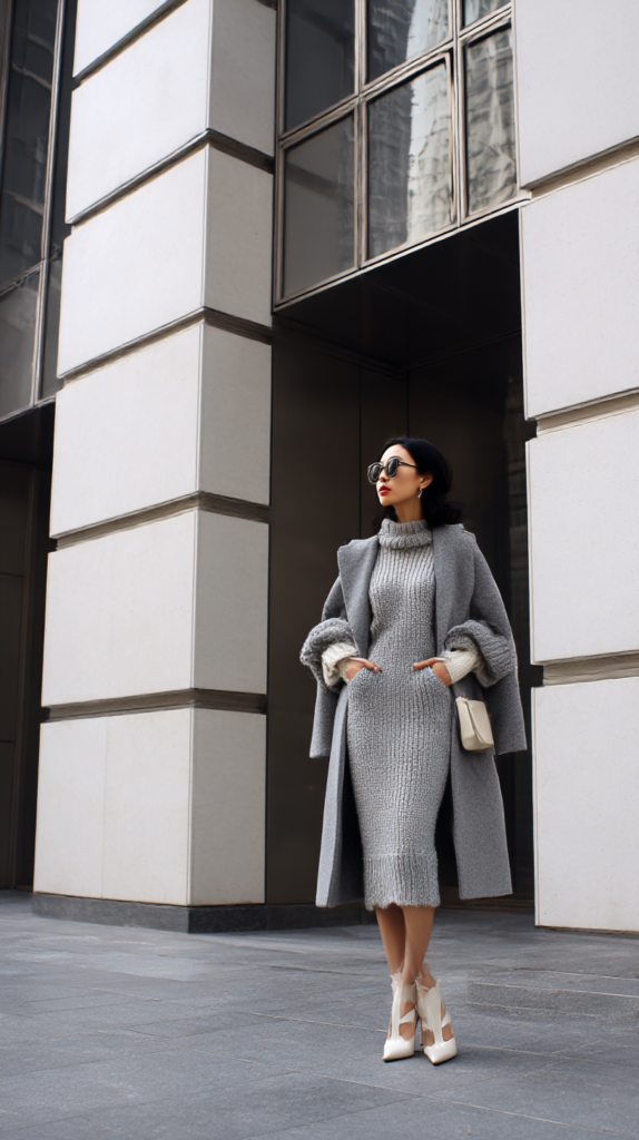 10. Elegant Knit Dress + Structured Outerwear
