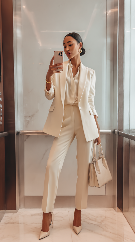 This outfit balances authority and femininity perfectly.