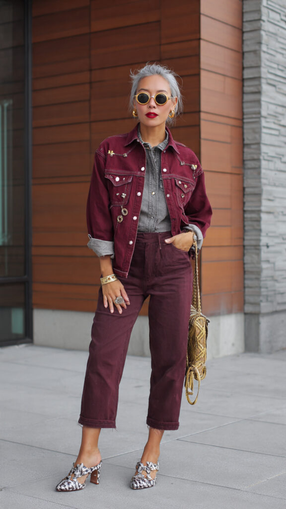 🍷 Burgundy Crops + Denim Shacket