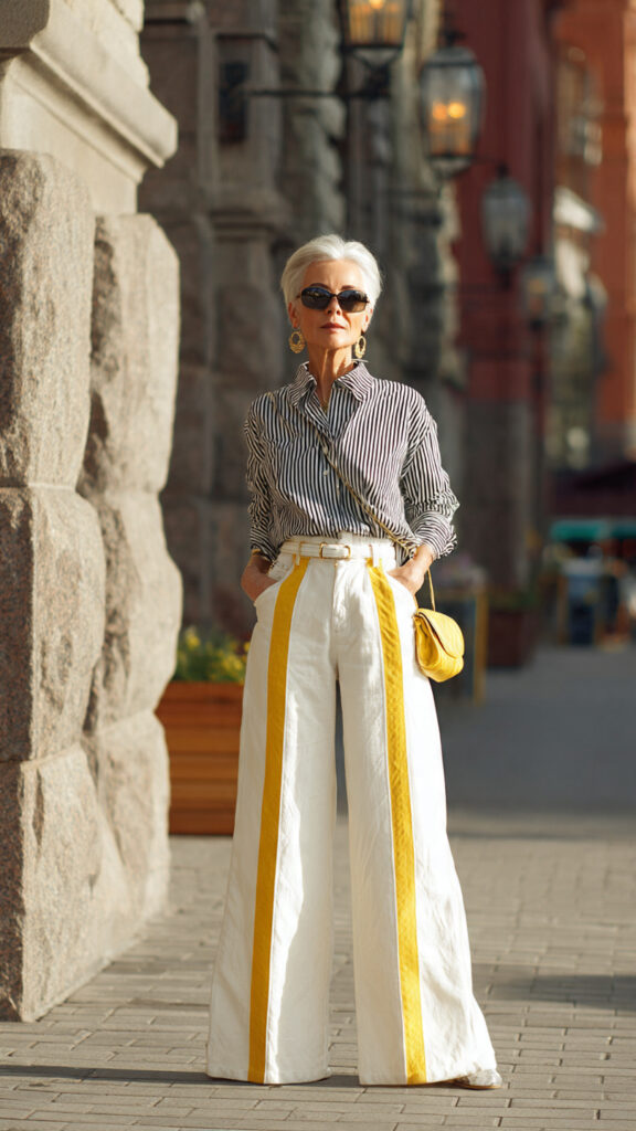 🌞 Wide-Leg White Jeans + Yellow Stripes