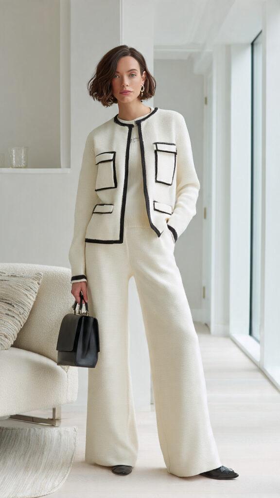 Whether it’s a knit set, lounge set, or tailored co-ord, continuity is the secret.
