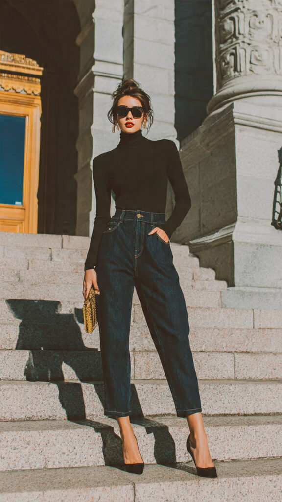 This combo never fails. High-waisted jeans visually raise your waistline, which instantly makes your legs look longer. Add a fitted or slightly tucked-in top and boom—proportions fixed.