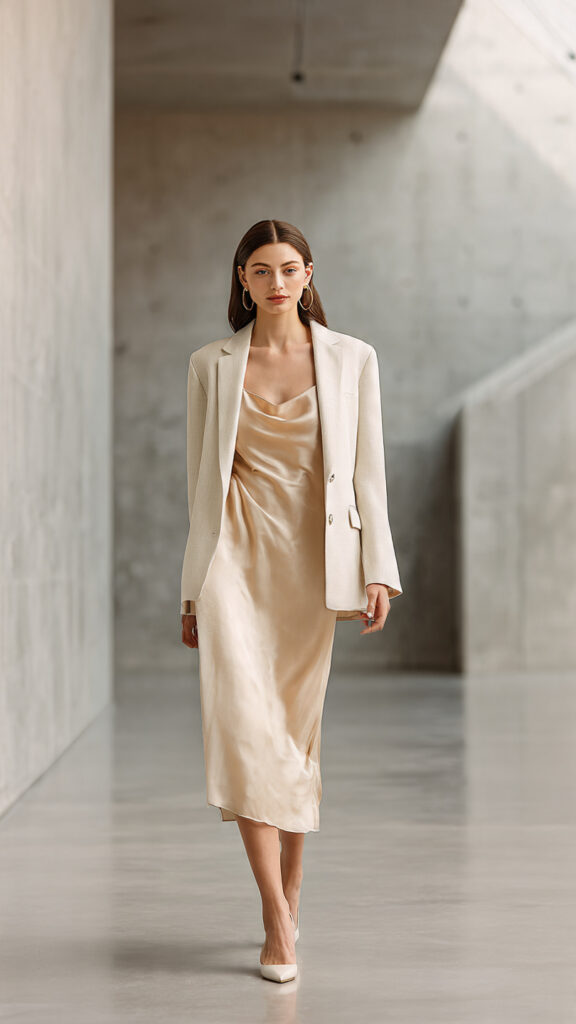 Mix lengths, textures, and fabrics. Lightweight knits over crisp shirts. Dresses under jackets. Effortless, but styled.
